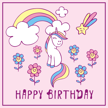Happy Birthday Greeting Card With Unicorn Happy Birthday