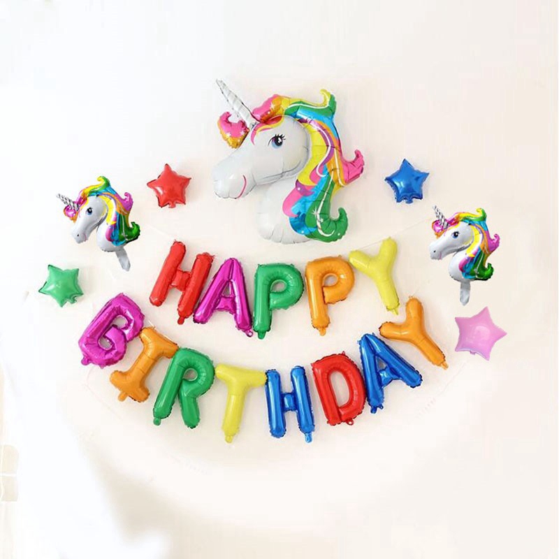 Unicorn Happy Birthday Letter Star Foil Balloons Party Decoration