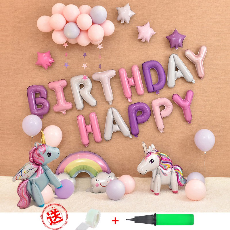 38pcs Cartoon Unicorn Happy Birthday Letters Balloon Inflatable