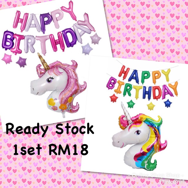 Ready Stock 1set Happy Birthday Letters With Unicorn Set