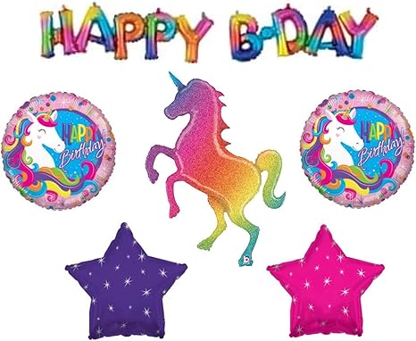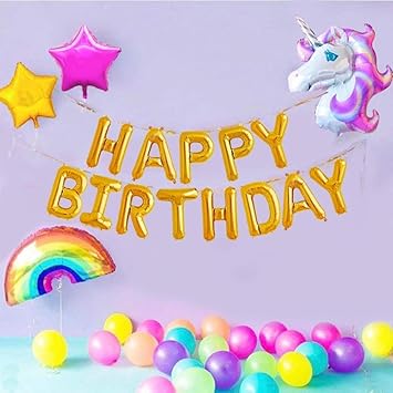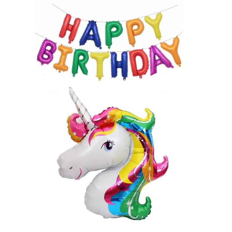 Happy Birthday Letter With Rainbow Unicorn Foil Balloons Banner
