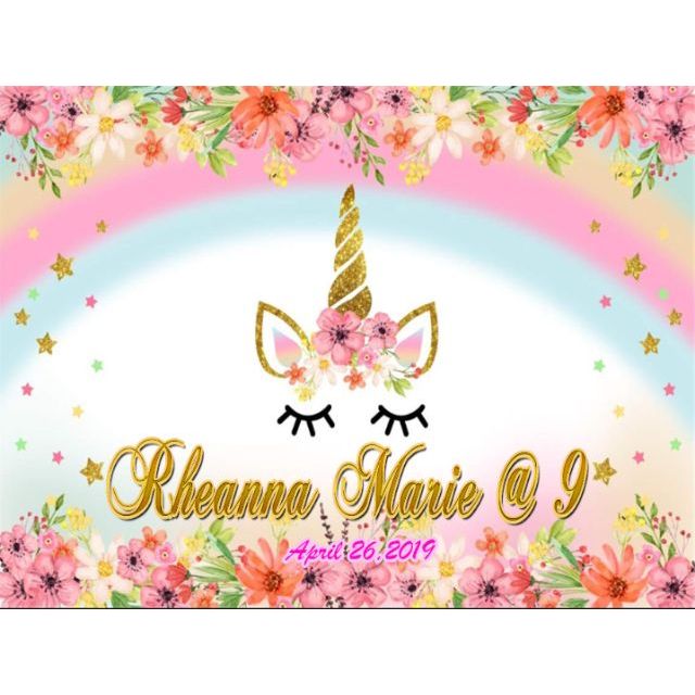 Rainbow Unicorn Birthday Backdrop Pink Floral Unicorn Shopee