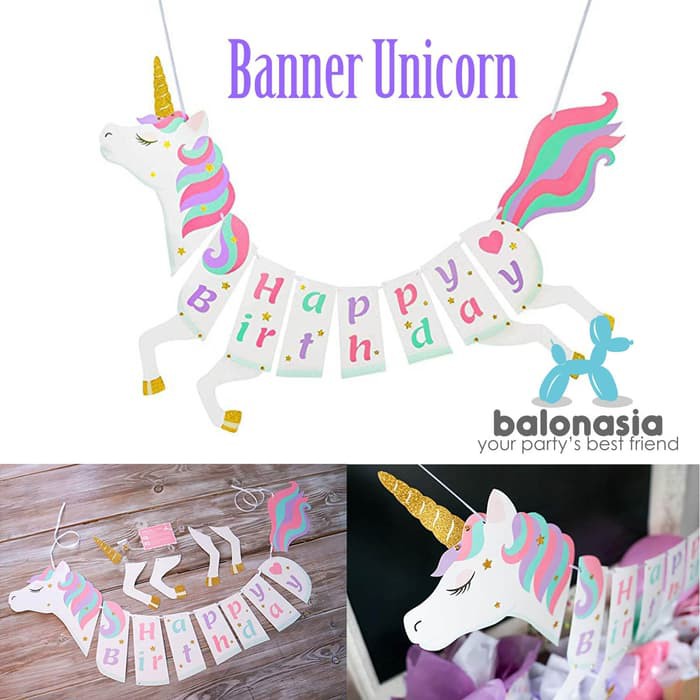 Balonasia Banner Ulang Tahun Happy Birthday Karakter Unicorn Shape