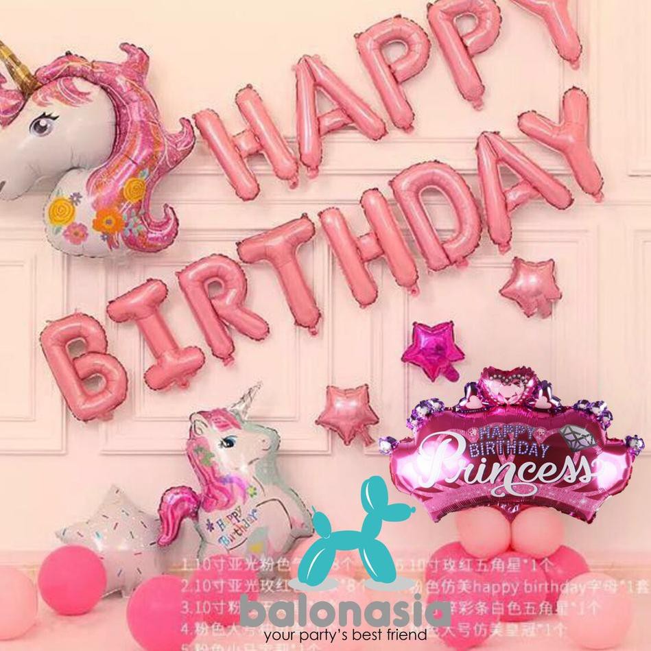 Jual Balonasia Set Happy Birthday Rainbow Unicorn Pink 1
