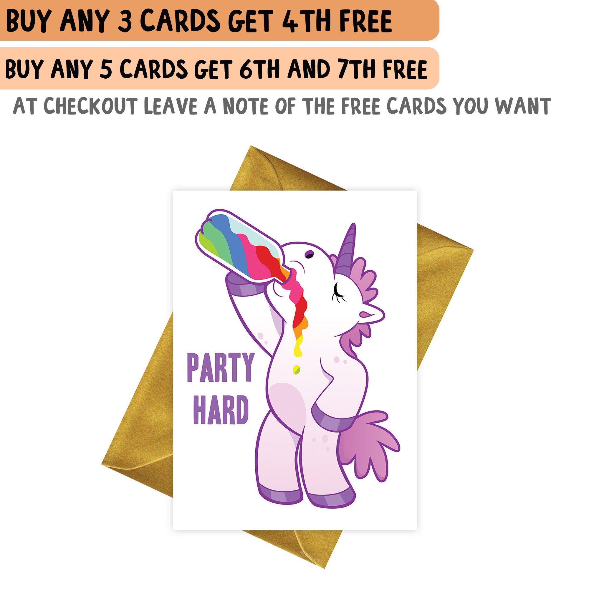 Party Hard Unicorn Happy Birthday Card Friend Birthday Etsy