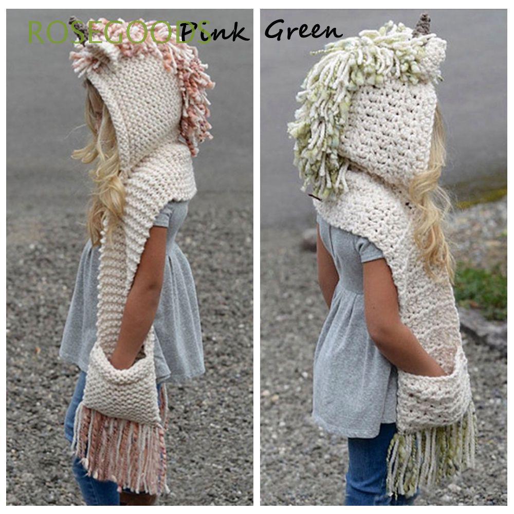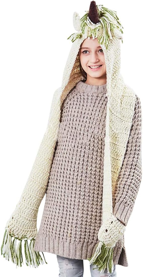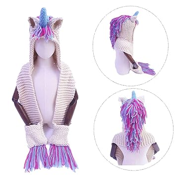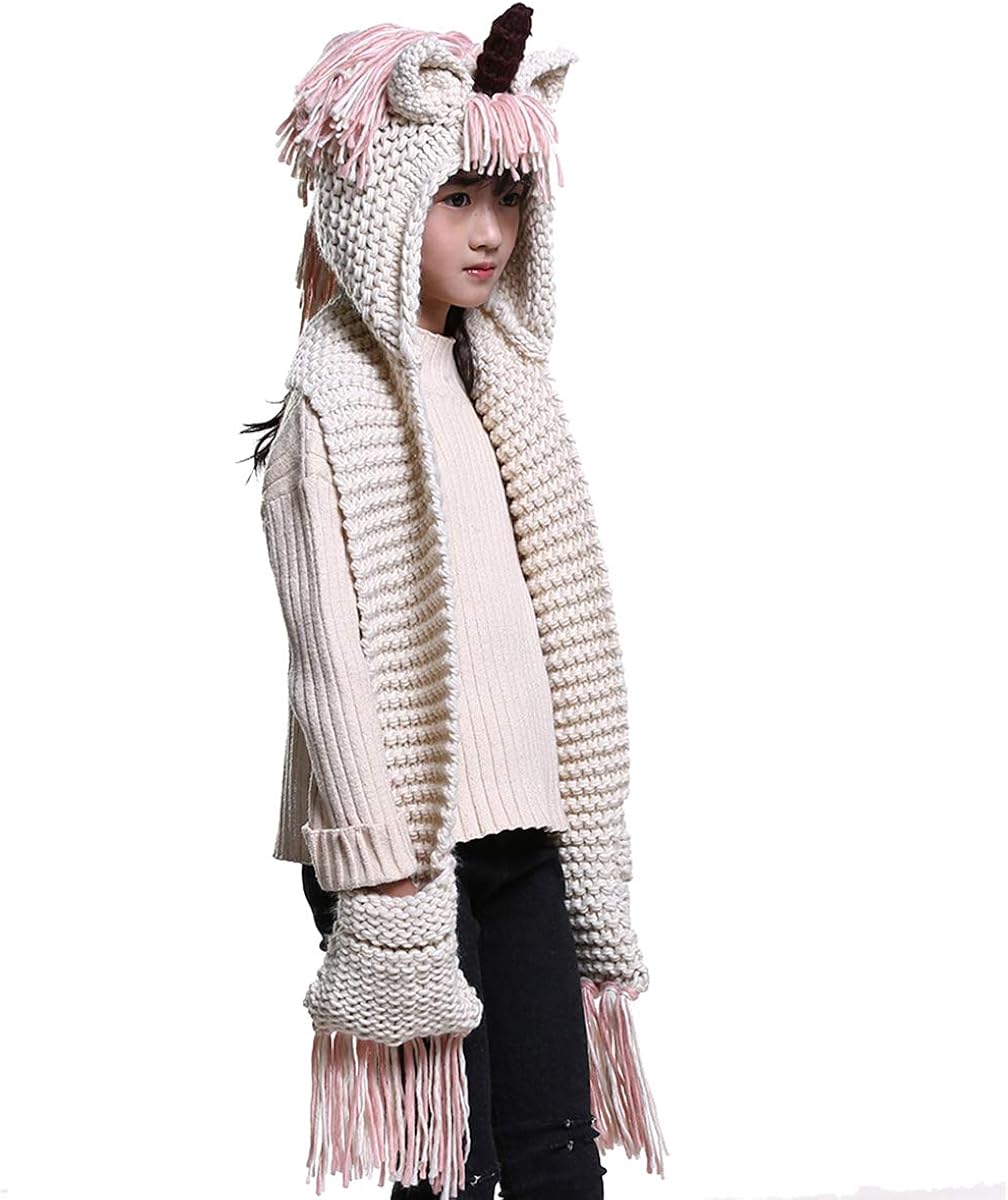 Pro Noke Girls Unicorn Hat Scarf With Pockets Winter Hooded Crochet Knitting Beanie Cosplay Amazon Ca Clothing Accessories