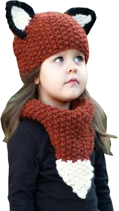 Amazon Com Feelmestyle Kids Cable Knit 2 In 1 Hat Scarf Cartoon Unicorn Fox Animal Hooded Scarf Clothing