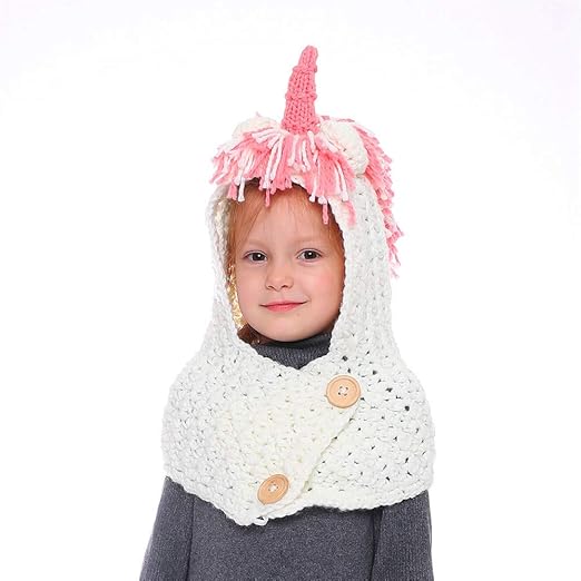 Yishelle Kids Cartoon Unicorn Hat And Stoles Knitting Pattern For Girls Winter Warm Hooded Stoles For 4 8y Color Pink Amazon Co Uk Kitchen Home