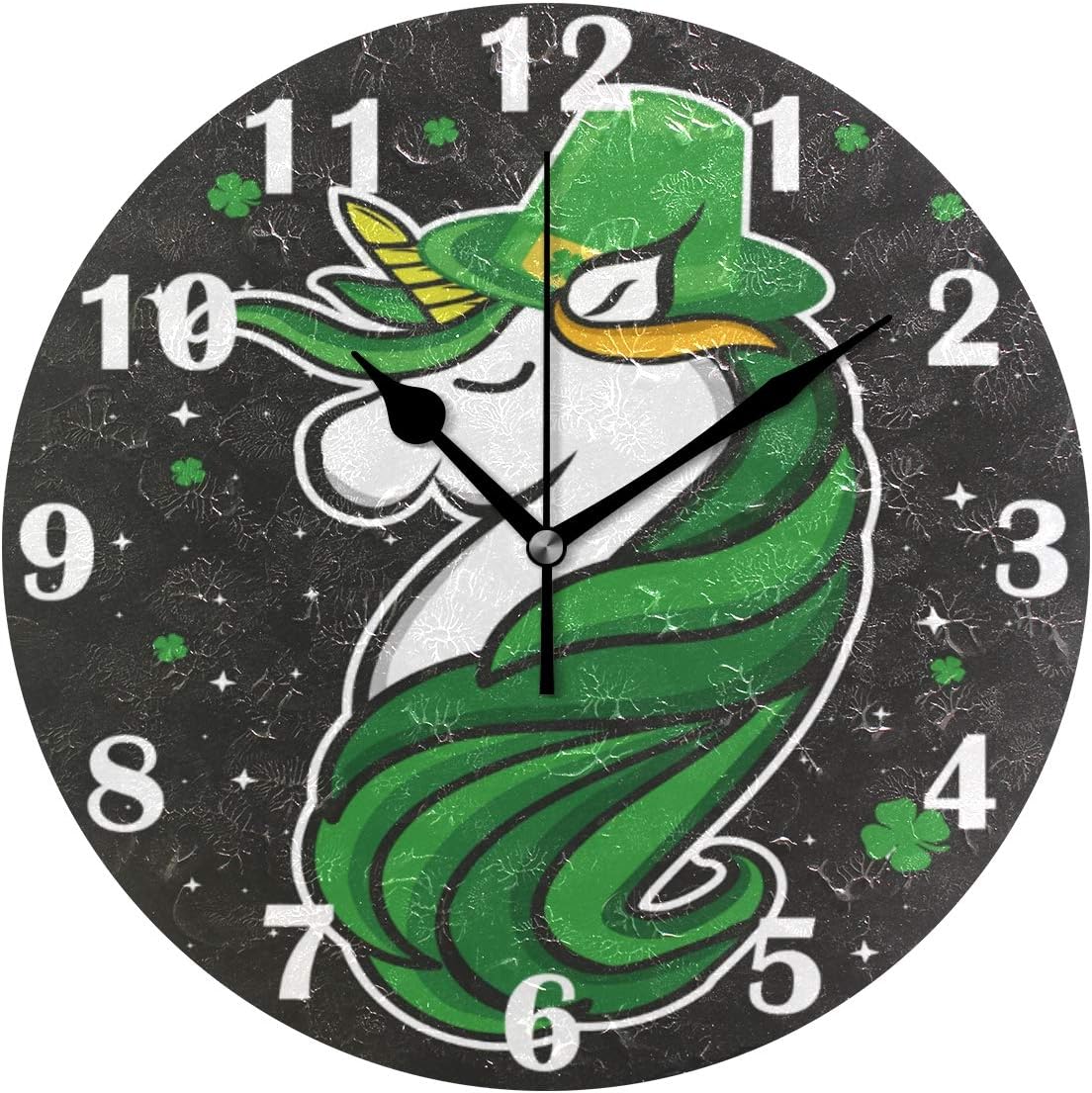 Amazon Com Unicorn Leprechaun Hat Shamrock Wall Clock Silent Non