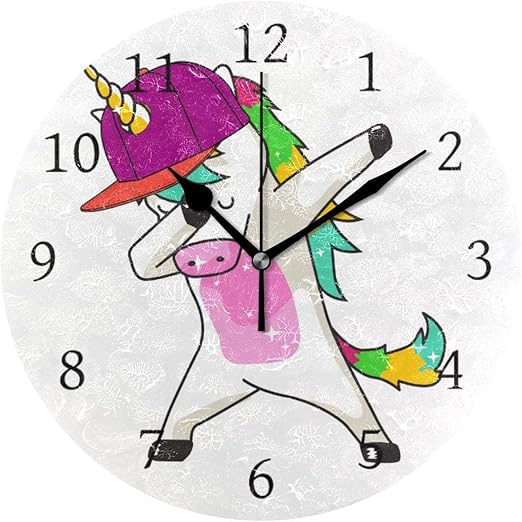 Amazon Com Ahomy 25 Cm Wall Clock Funny Dabbing Unicorn With Hat