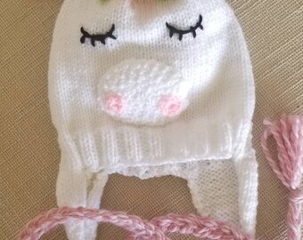 Knitted 3 10 Years Girls Winter Unicorn Hat Scarf Cute Handmade