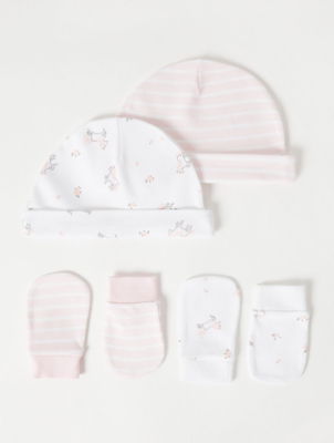 Pink Unicorn Print Hat And Scratch Mitts 2 Pack Baby George