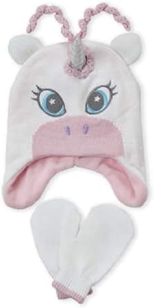 Capelli Of New York Unicorn Flower Earflap Hat Mittens Set