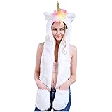 Unicorn Hat Faux Fur Unicorn Hoods Scarf Gloves Mittens Led Light