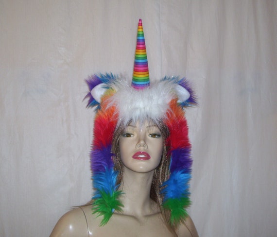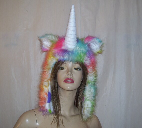 Unicorn Fur Hat Adult Furry Fantasy Hood Rainbow Unicorn Hood Etsy