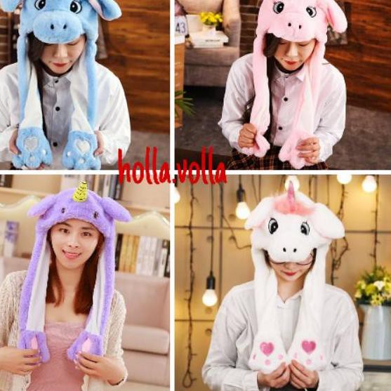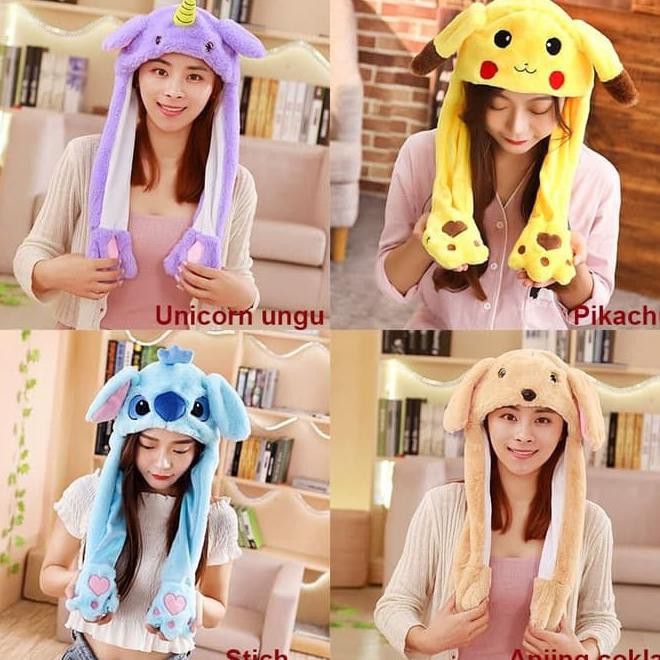 Sale Topi Stitch Dancing Pig Ear Bunny Hat Kpop Moving Unicorn