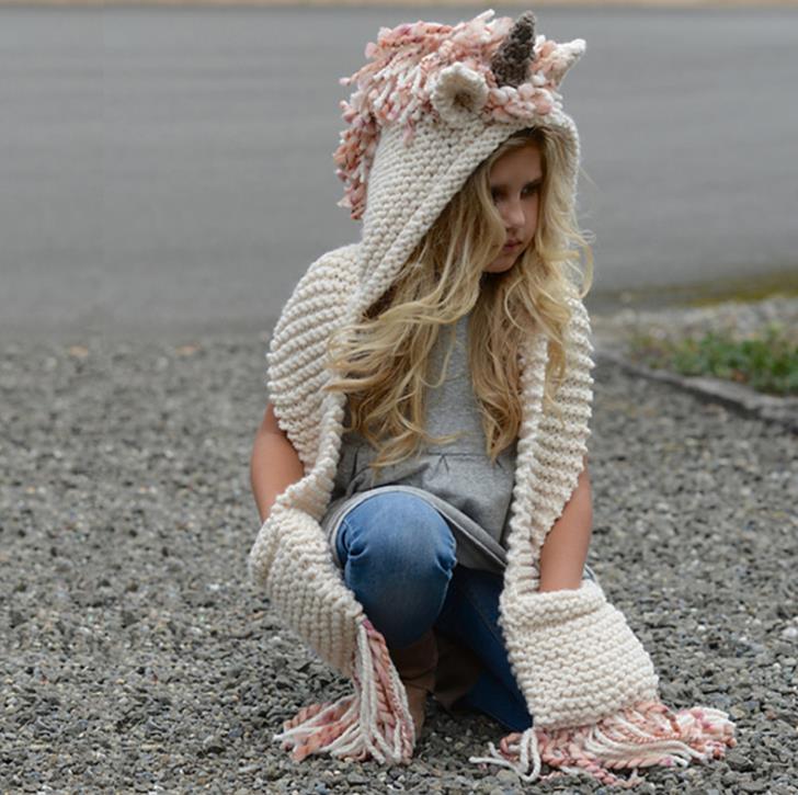 2019 Brand New Kids Girls Unicorn Hooded Scarf Animal Hoodie