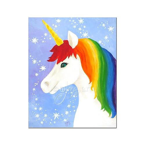 Amazon Com Rainbow Unicorn Head 8x10 Inch Print For Girls Room