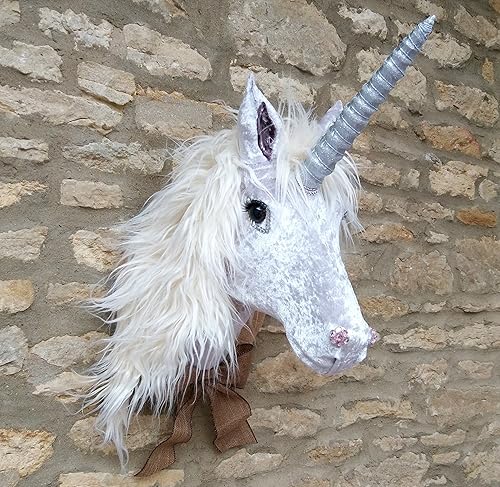 Amazon Com Handmade Unicorn Head Faux Taxidermy Silver Velvet