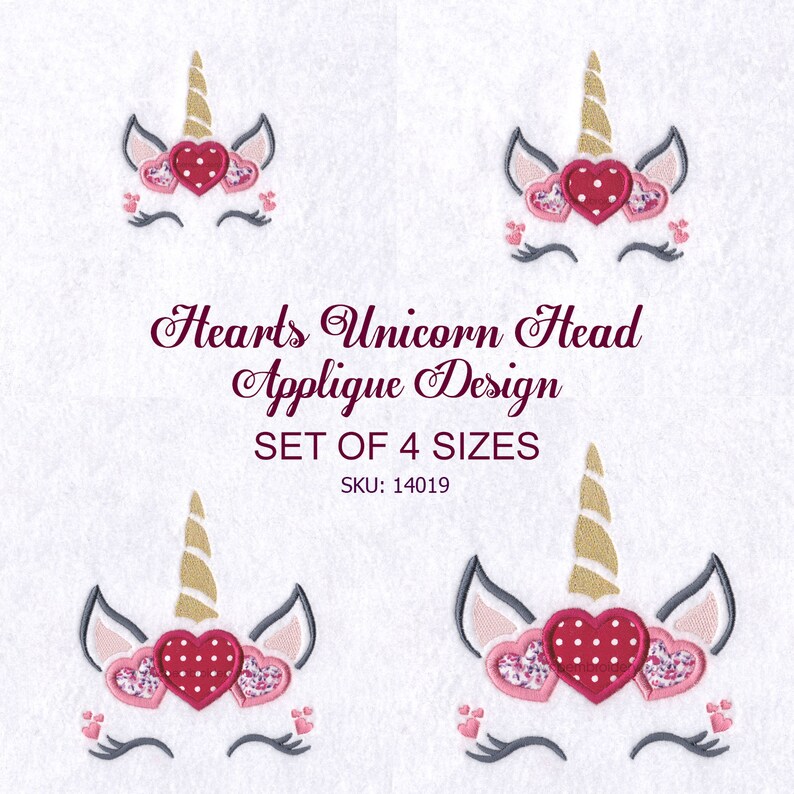 Hearts Unicorn Head Applique Embroidery Design Cpembroidery