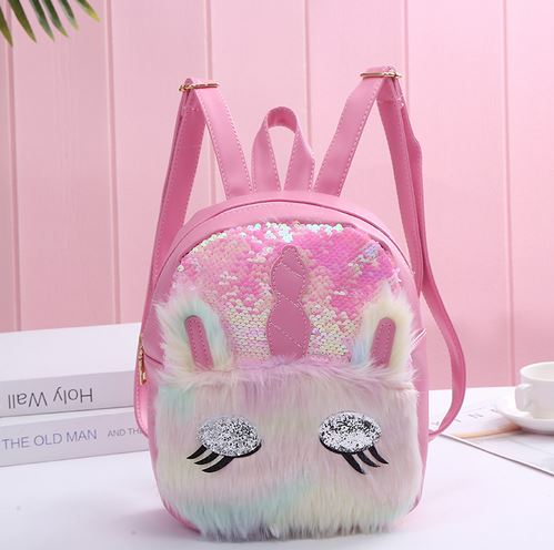 Bunny Unicorn Rainbow Fur Sequin Pastel Backpack Free Ship