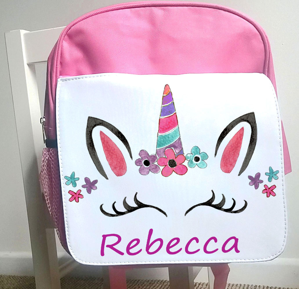 Personalised Unicorn Head Girls Pink Kids Backpack Children S