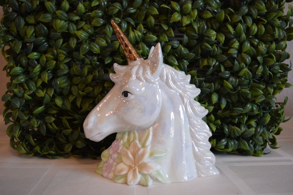 Pearlized Porcelain Unicon Head Bust Gold Horn Unicorn Etsy