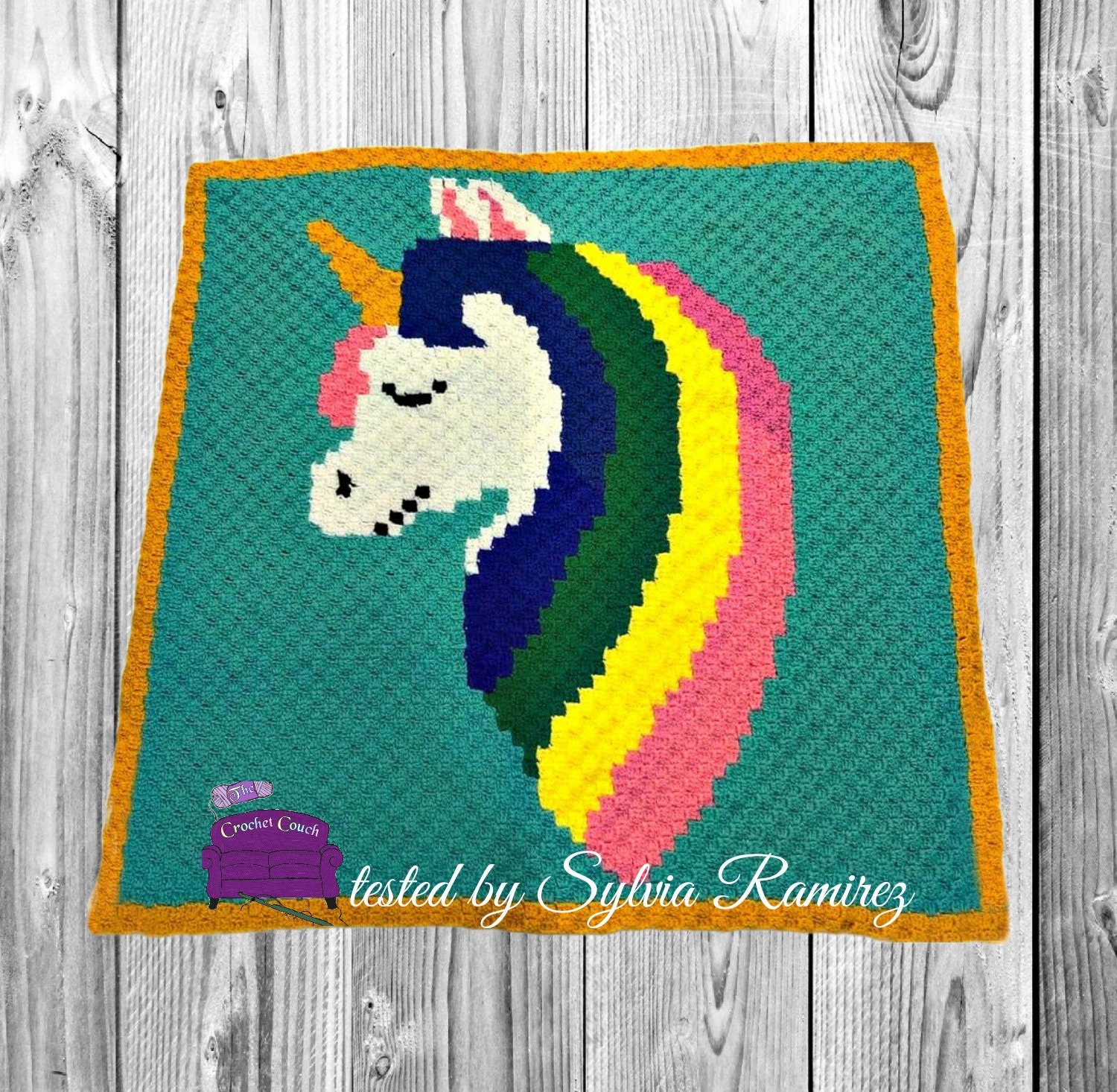 Unicorn Head Blanket C2c Crochet Pattern Written Row Counts Etsy