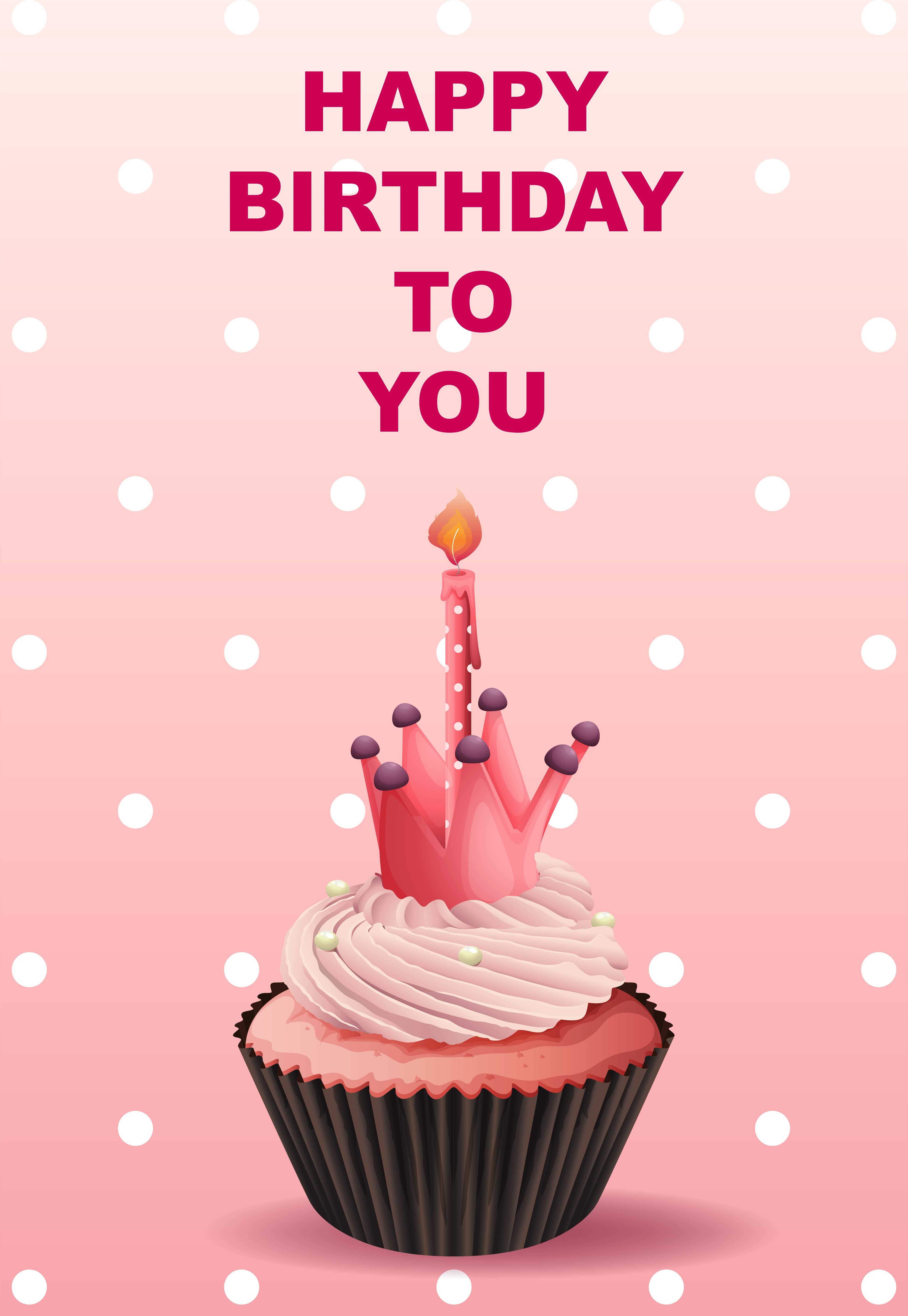Happy Birthday Card Template With Pink Cupcake Download Free