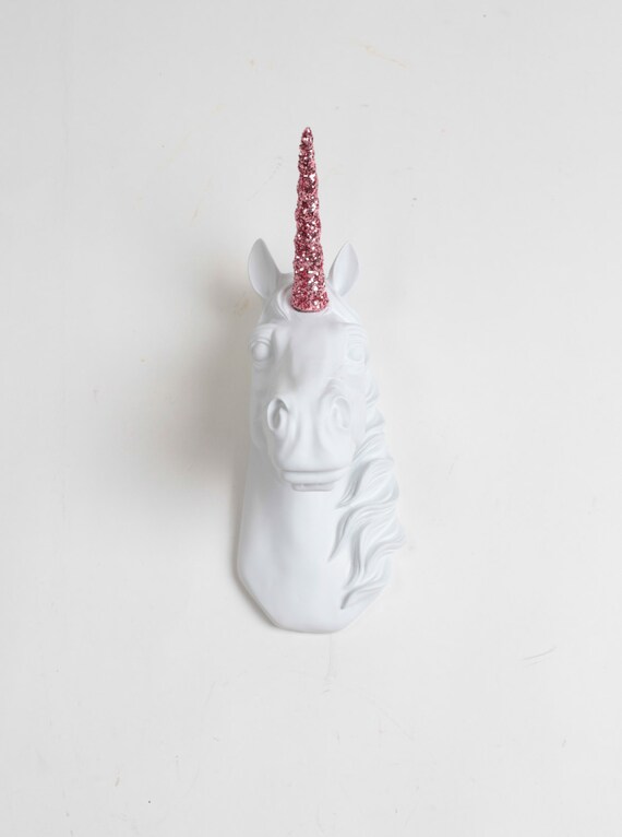Glittered Unicorn Head Wall Decor The Binx In White W Rose Etsy