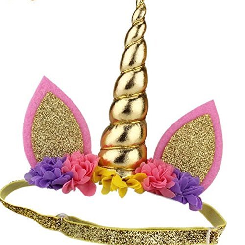 Amazon Com Kids Girls Unicorn Headband Gold Horn Ears Flower