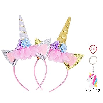 Amazon Com 2 Pack Unicorn Horn Headband Flowers Ears Headbands