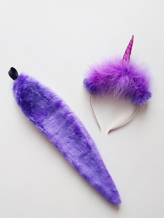 Fluffy Purple Unicorn Headband And Unicorn Tail Set Etsy