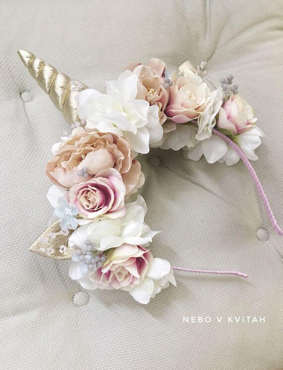 Pink Unicorn Horn Flower Unicorn Crown Gold Unicorn Headband Etsy