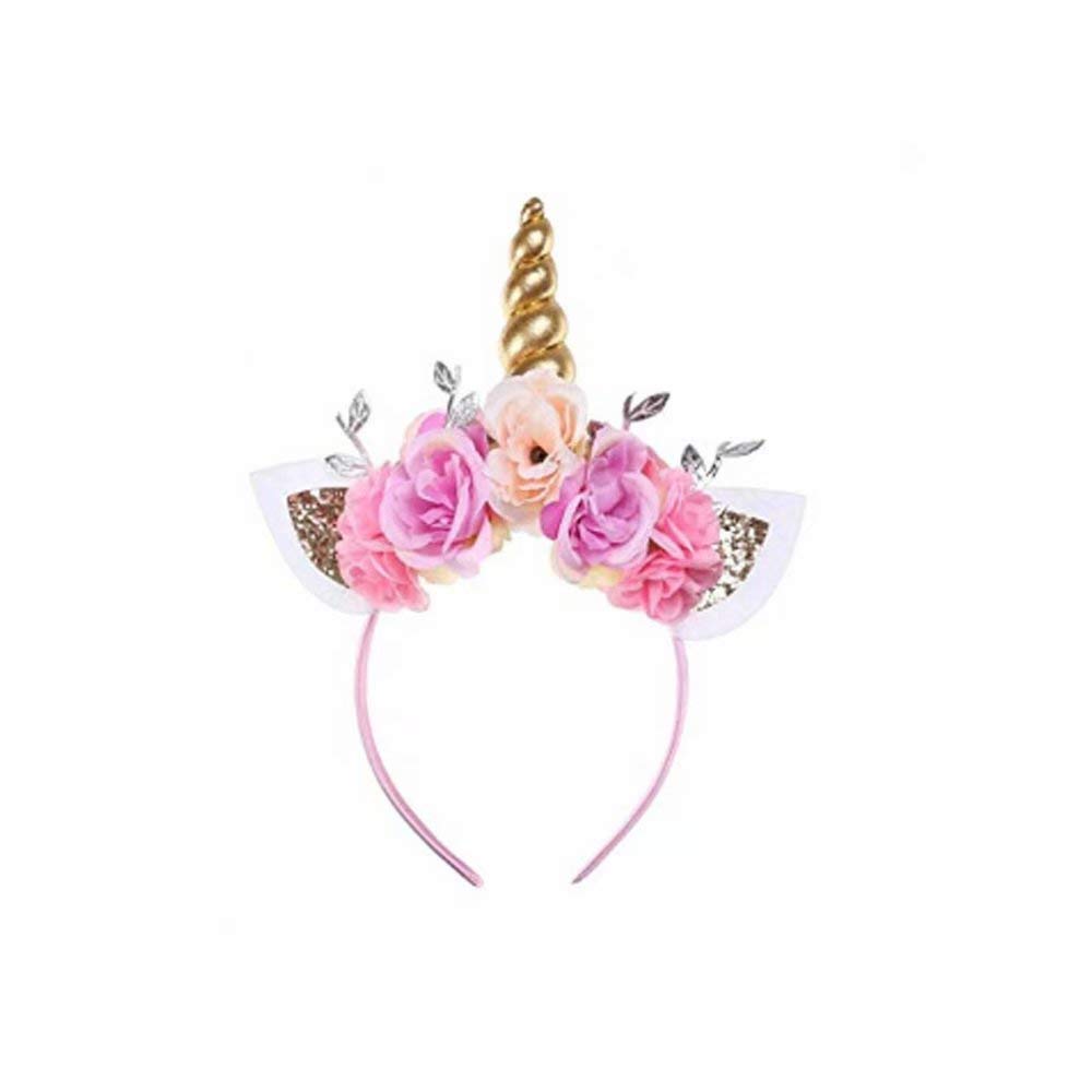Headband Glitter Gold Unicorn With Flowers Party Supplies
