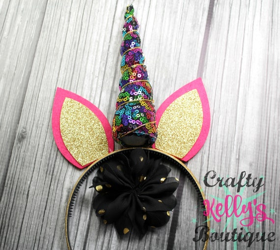 Diy Rainbow Sequin Unicorn Headband Kit Black Flower Gold Etsy