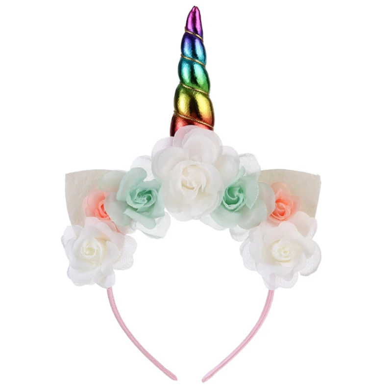 China Rainbow Flowers Unicorn Headband Baby Girl Hair Accessory