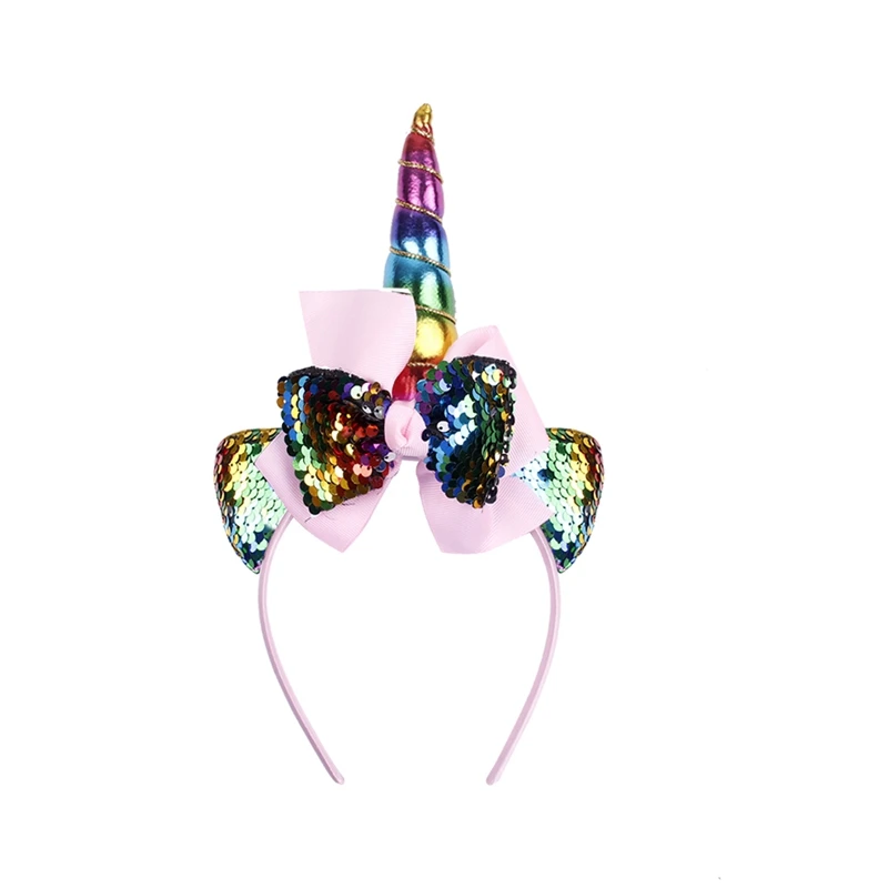 2019 Glitter Metallic Unicorn Headband Girls Big Sequin Bows