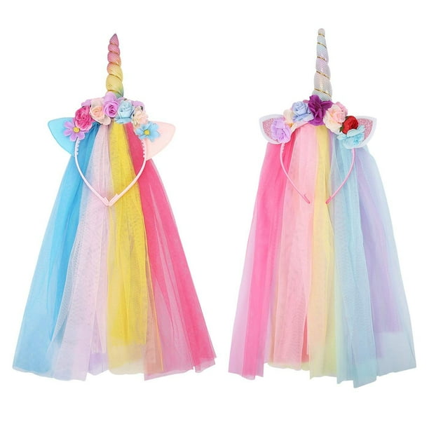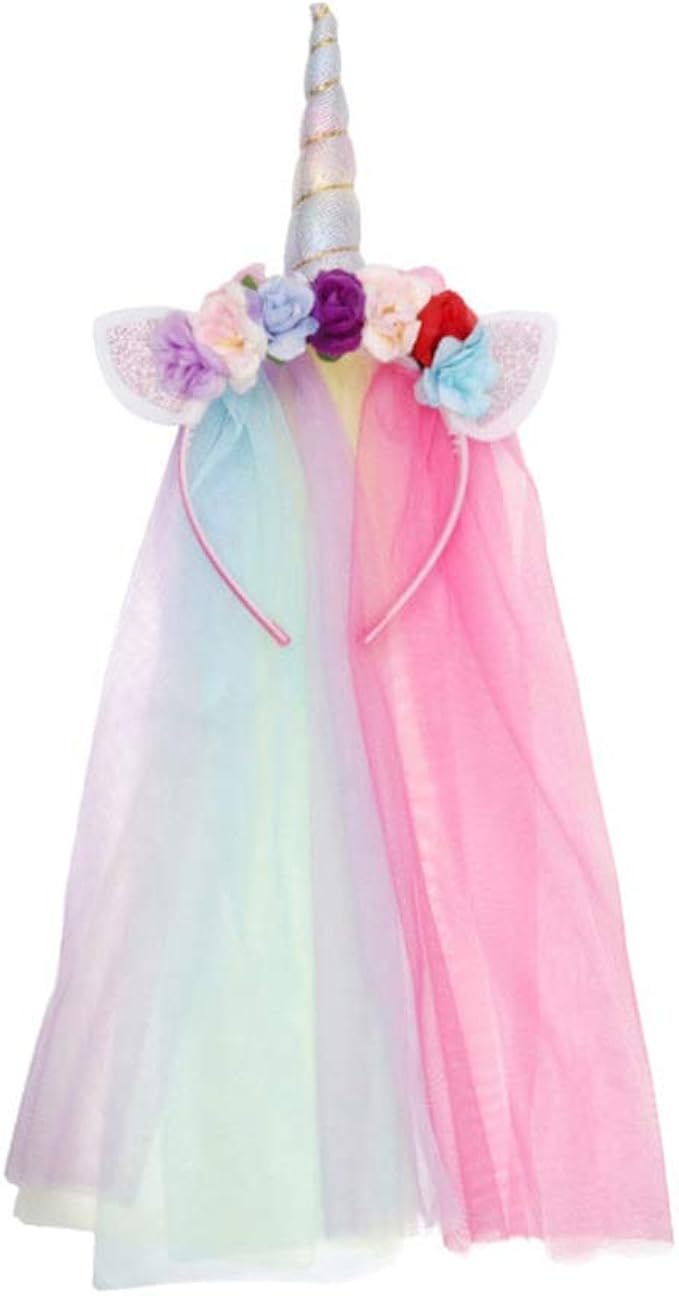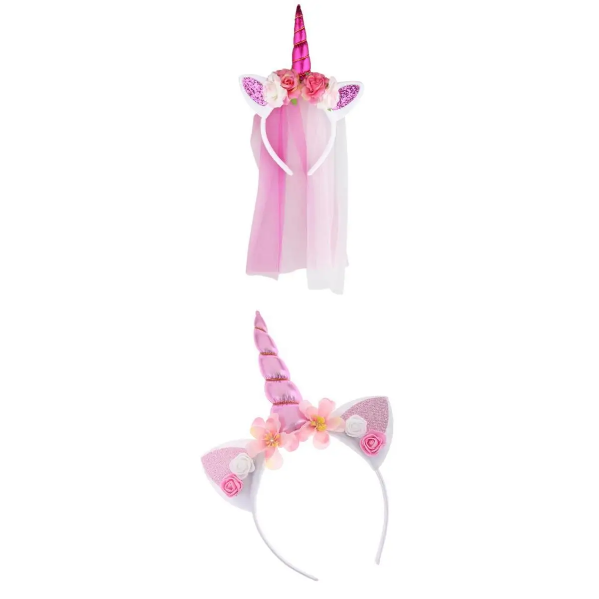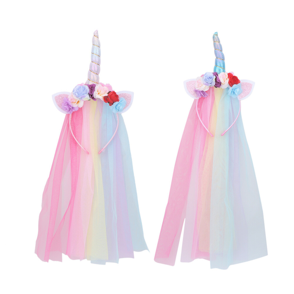 2pcs Flower Unicorn Headband With Veil Hair Hoop Unicorn Headband