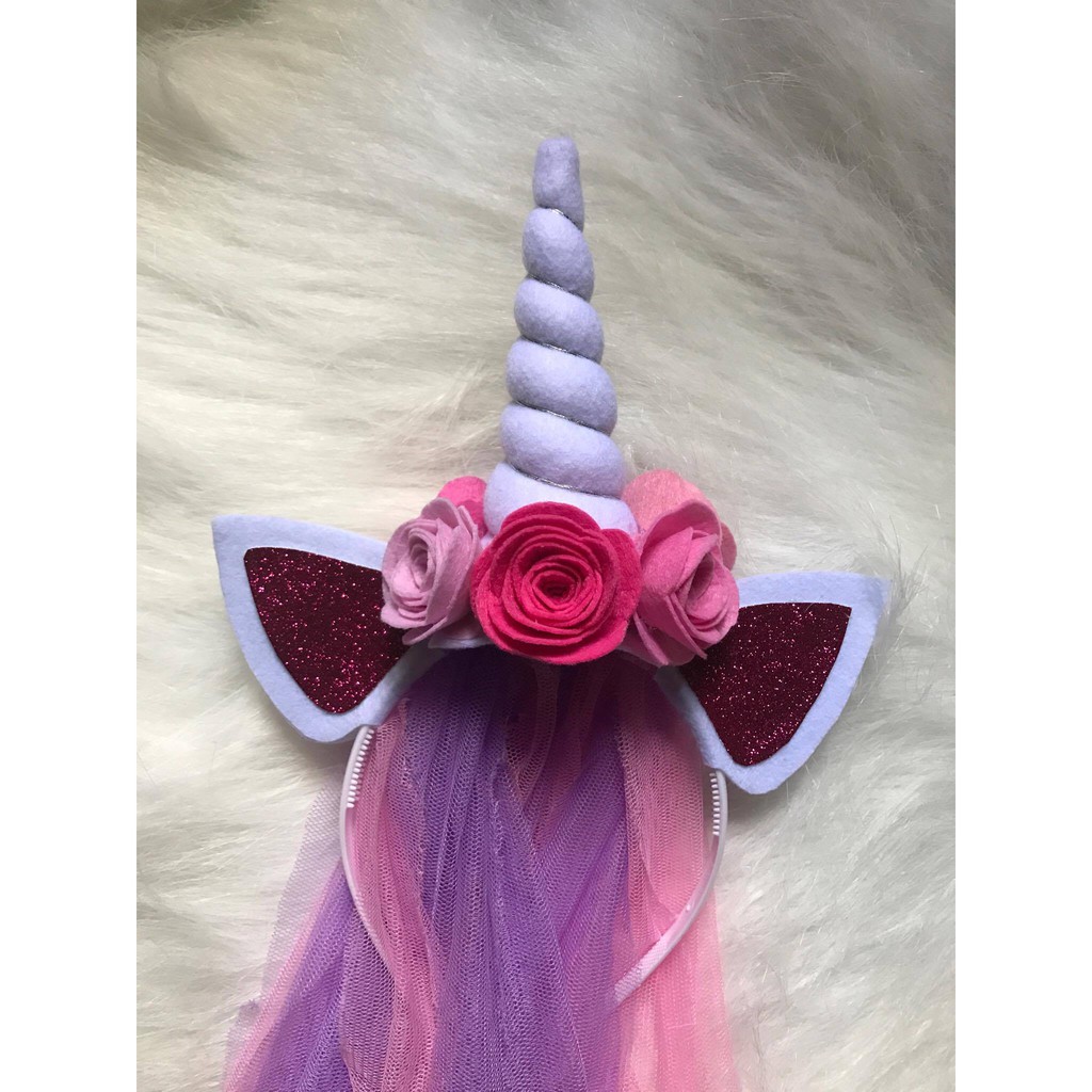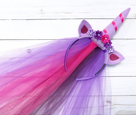 Purple Pink Unicorn Headband W Tulle Veil Sparkle Hair Etsy