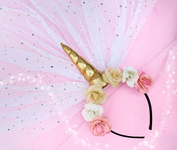 Magical Unicorn Veil Floral Unicorn Headband For Fantasy Etsy