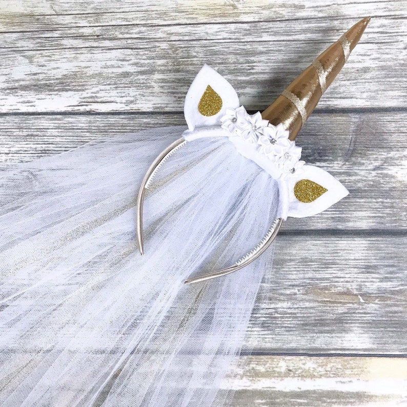 Unicorn Bride Veil Headband W 18 Tulle Veil And Ear Headpiece