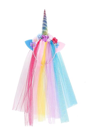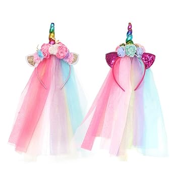 Amazon Com Lurrose 2pcs Unicorn Headband With Veil Rainbow