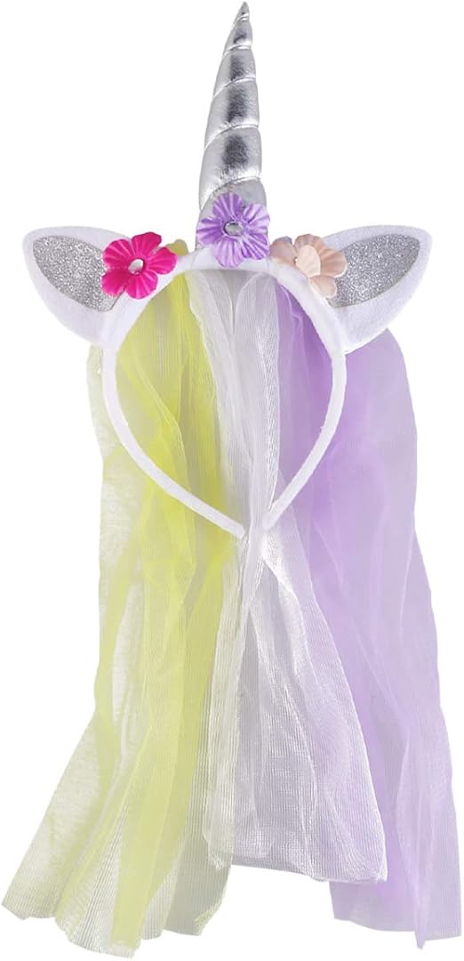 Hde Hde Rainbow Unicorn Headband With Veil Two Pack Silver And