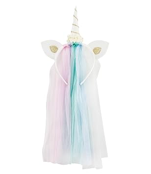 Mythical Unicorn Horn Headband Veil Wings Tulle Fairy Tale Costume Acc