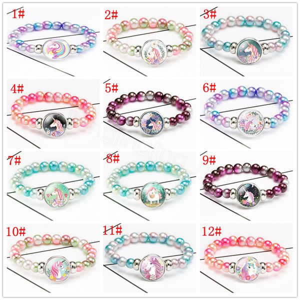 Rainbow White Unicorn Silver Mermaid Glass Expression Bracelet