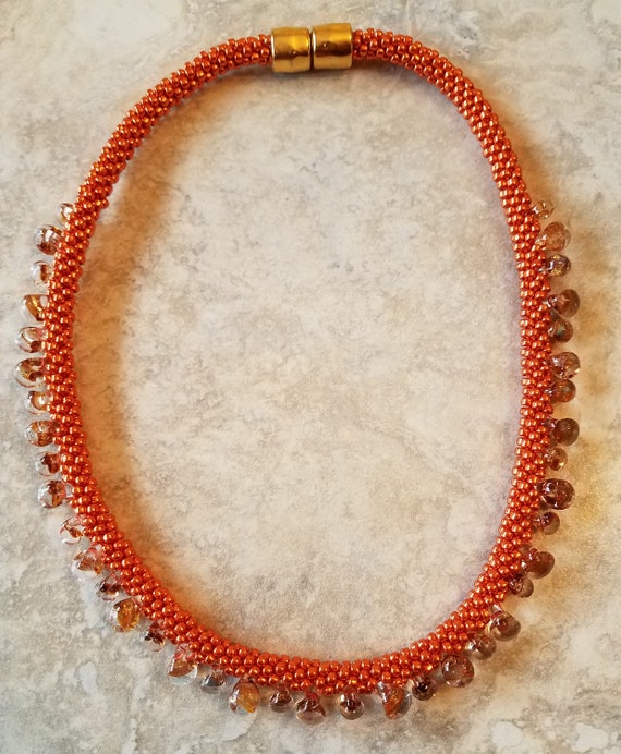 Kumihimo Orange Saffron Braided Necklace Unicorne Teardrop Etsy
