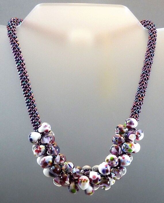 Kumihimo Braided Necklace With Purple White Glass Unicorne Etsy