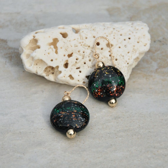 Black Unicorne Bead Earrings 14k Gold Filled Earrings Etsy